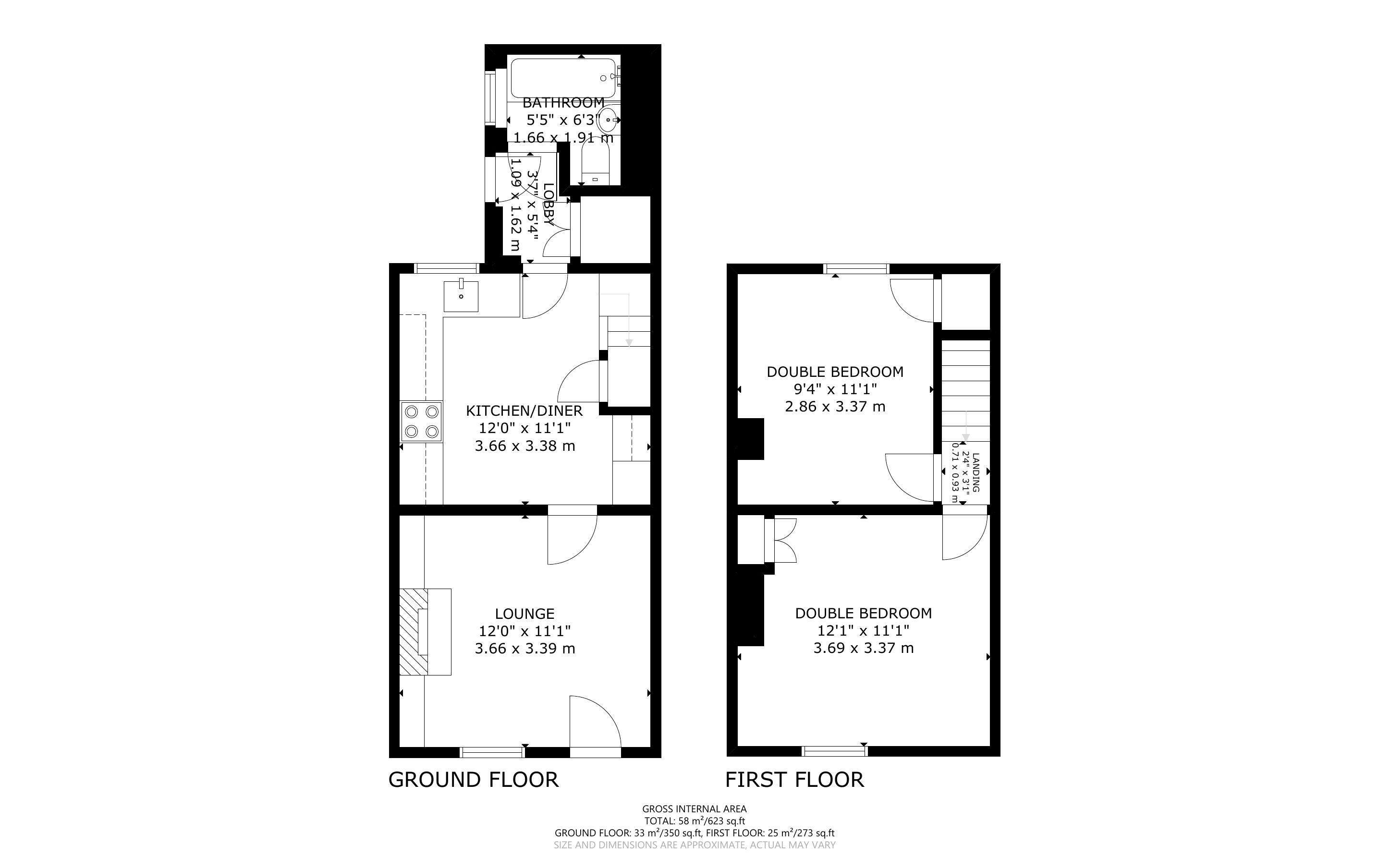 Kitchen: Gas hob, oven, microwave, integrated fridge freezer, washing machine - cook proper meals